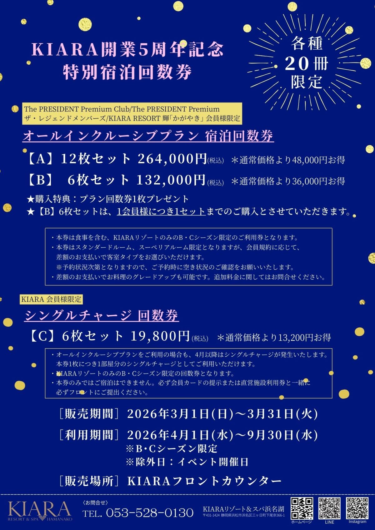 ・本券は食事を含む、KIARAリゾートのみのB・Cシーズン限定のご利用券となります。