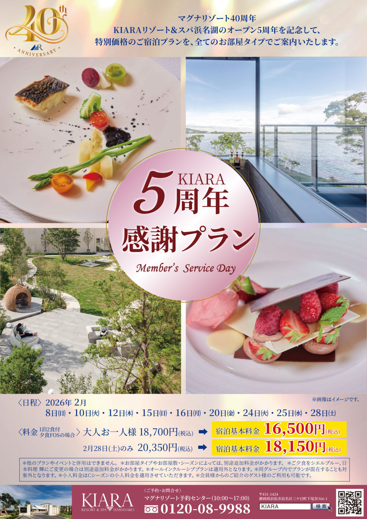 KIARAリゾート&スパ浜名湖のオープン5周年を記念して、