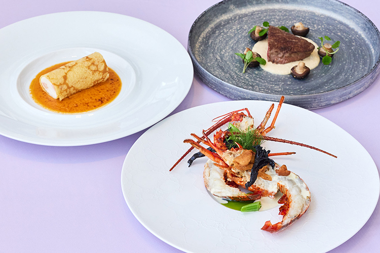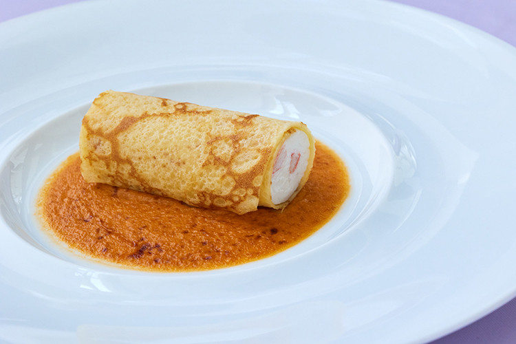コルビアックはクレープ生地に、伊勢海老のフリットは真冬のソースアルベールと南仏を思わせるハーブソースと合わせて…ここでしか食べられない美食を。