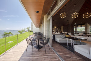 高い天井で開放的な空間の新生レストラン。